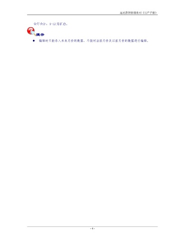 速达营销管理系列《用户手册》 全年合计:1-12 月汇总。 提示 编辑时只能录入未来月份的数据,不能对当前月份及以前月份的数据进行编辑。 - 4 -